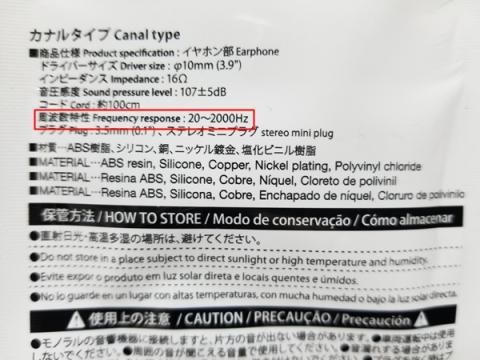 当然ハイレゾ対応なんて期待していないし、最初見たときはよくある再生周波数20~20kだと思っていました。