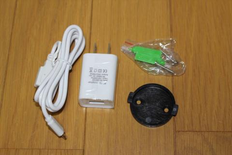 壁取付用のブラケット、電源供給用のMicroUSB-USBケーブル、充電器が付属しています。