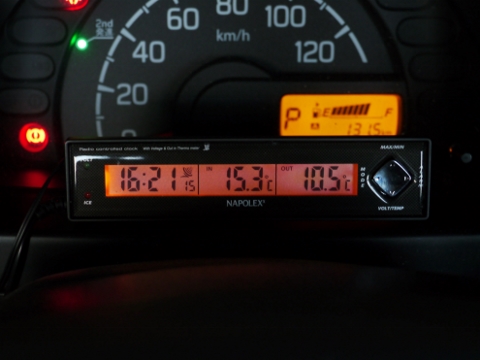 センサー部を車外に付けることで、外気温測定も出来るようです。