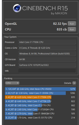 Core i7 7700k 4.2GHz : 835 cb