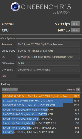Ryzen™ 7 1700X 3.40GHz : 1407 cb