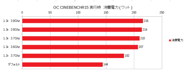 1.2vまで思い切って下げた場合全コア3.7Ghzでようやく180Wまで下がりました