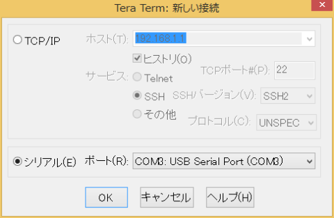 ここまで認識されれば、TeraTerm上からシリアルポート接続が利用可能となります。