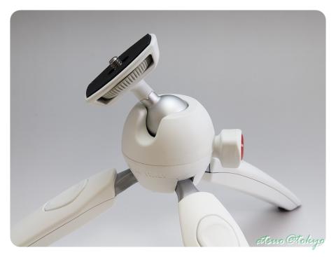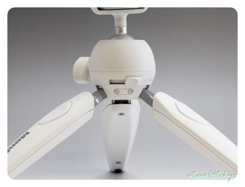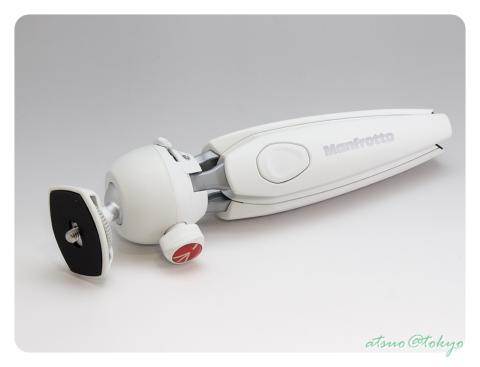 自由雲台になっており、マンフロットのロゴのあるレバーを回す事で開閉します。