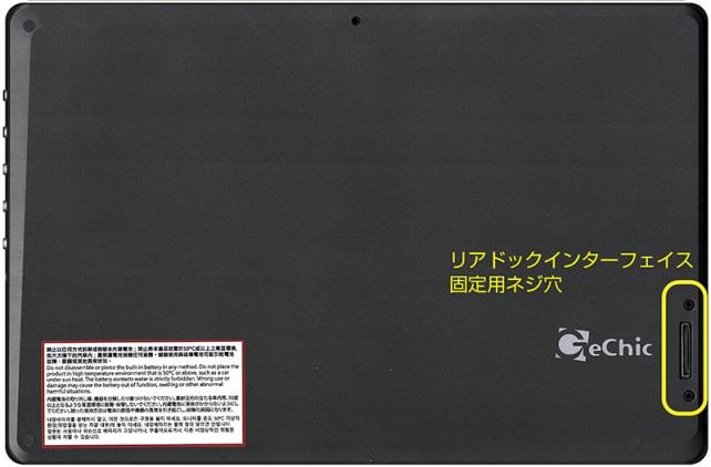 GeChic On-Lap 1102Hには、背面にリアドック用のコネクタとリアドック固定用ネジ穴が付いています。