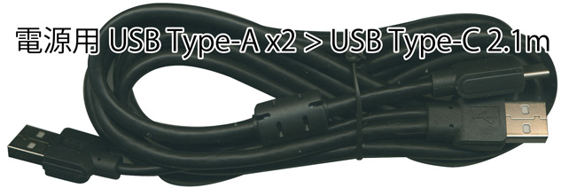 これは、2系統のUSB Type-AコネクタをUSB Type-Cに変換する電源用ケーブルで、2.1mの長さがあります。