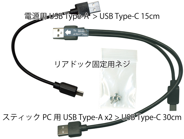 残りの、短めの電源ケーブル2種類は、何れもリアドックにスティック型コンピュータを接続するための電源ケーブルです。