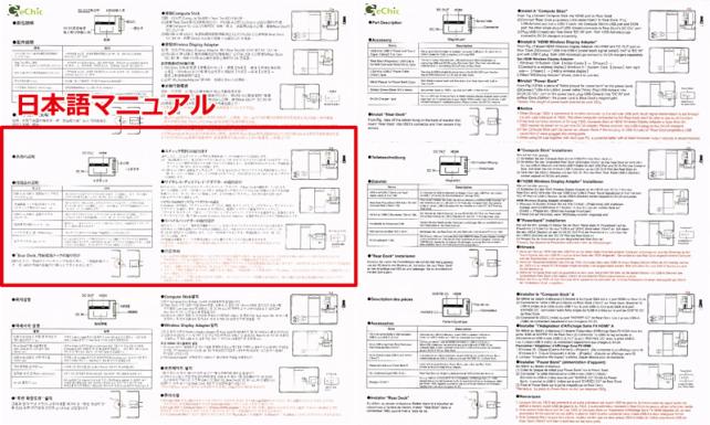 取扱説明書は、A3両面印刷で、6か国語対です。当然ですが、日本語の表記もあります。