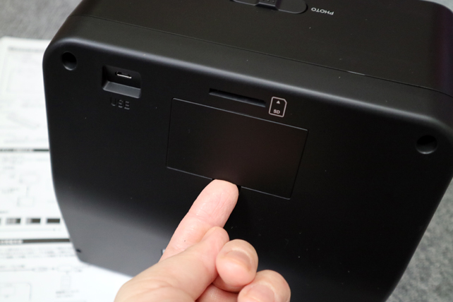 別途用意したSDカードを裏にさしたら、準備OKです!