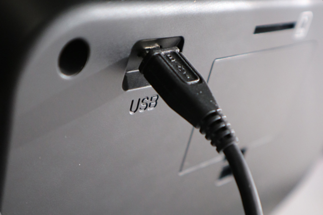 ふたを開けてバッテリーを入れ、USBケーブル&ACアダプターをつなげて充電します。
