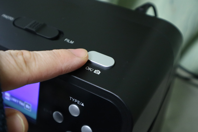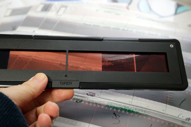 後は、上の[OK/撮影]ボタンを押してスキャンします。1コマ撮影したら、手動でフォルダーをずらし、次のコマ、次のコマとスキャンしていきます。1コマあたりの保存時間は、3~4秒くらいです。