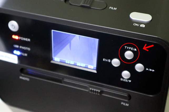 差し込んだら、[TYPE/▲]ボタンを押し、フィルムの種類を選択して「35mm」に合わせます。
