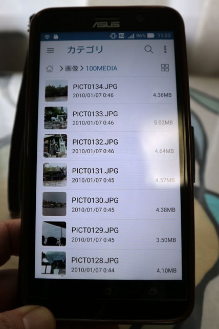 せっかくmicroSDに取り込んだので、PCを使わずに、そのまま利用できないかとスマホに突っ込んでみました。認識は問題なし!撮影日はちょっと変ですね。2017-12-10に取り込んだのですが…。