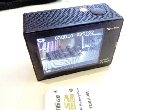 中華製格安アクションカメラの一つ、EKENのH9Rです。1200万画素でいちおう4Kも撮れると謳っていますが、4Kの場合25fpsなので実用性は今一つです。写真に写っているSDカードはサイズ比較用です。H9RにはmicroSDしか入りません。