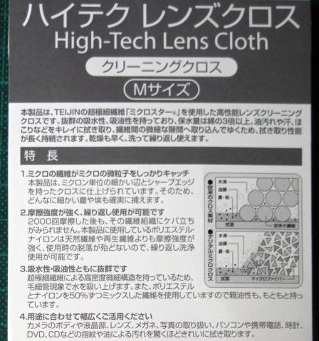 レンズは汚さないのがいちばんなのだけど、それでもちょっと拭きたい時いくらなんでもその辺のティッシュやタオルで拭くわけにいかないので、専用と謳われている1枚を購入しました。