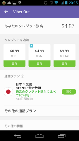 そこに、Viber Outの利用クレジットが上乗せになるのですが、