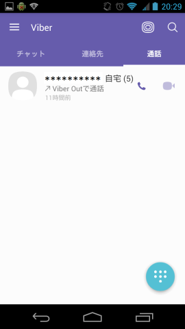 050番号を使う時は、着信はそのまま着信し、履歴はViberアプリ内に残り、
