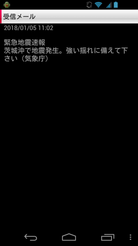 その際の緊急地震速報メールは、NTTドコモのエリアメールで届き、