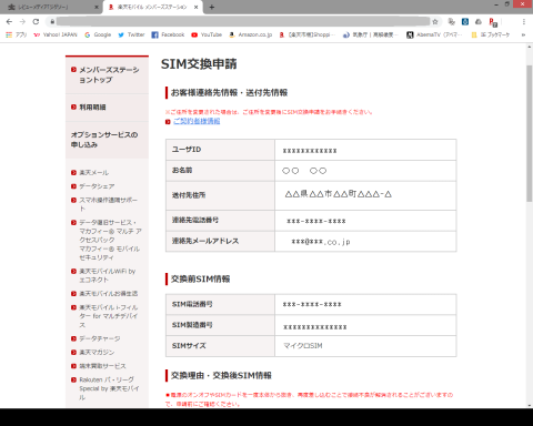 SIM交換申請は、楽天モバイルのメンバーズステーション内で行います。