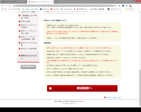 夕方に申請すると、新しいSIMが届くのが翌々日