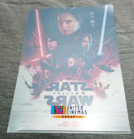 ユナイテッドシネマにて入場者限定特典でもらった「スター・ウォーズ/最後のジェダイ」のA4クリアファイルです。