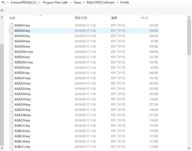 ヒマだったのでプロファイルを開いてみました。 すると押し下げ圧やフルキーorテンキーレス、配列毎に細かくプロファイルが用意されていました。