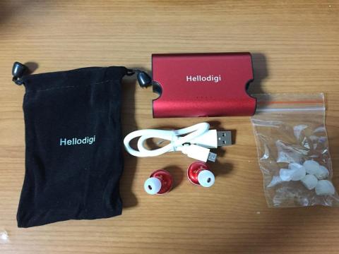 Beat-Inと似た構成の製品を選んだのでイヤホンとバッテリーを兼ねたケースにサイズ違いのイヤーピース、充電ケーブルに収納用ポーチです。