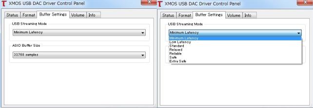 あるいは,XMOS のコントロールパネルで Buffer Settings を最大にしてみては?
