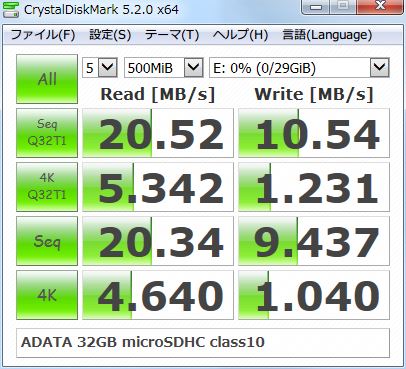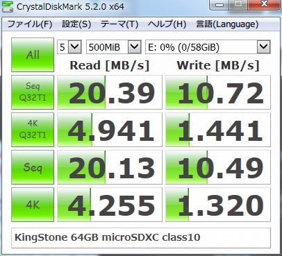 (検証環境:Windows7マシン、USB2.0接続のカードリーダー(BUFFALO BSCRA26U2BK)、素のカードアダプタ(microSD→SD))