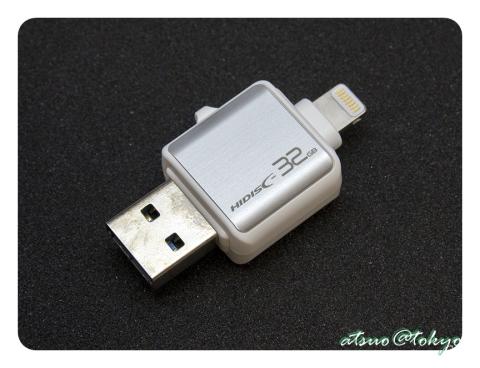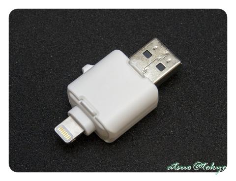 Lightningコネクタ端子と USB Aコネクタ端子を持つ USBメモリです。