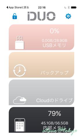 インストール後 iDUO Driveを開くと、メイン画面が開きます。