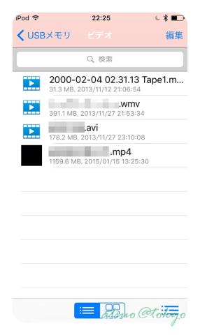 今回[mpeg]、[wmv]、[avi]、[mp4]の 4種類の動画ファイルを入れてみたところ一覧表示もされ、視聴も全て行えました。