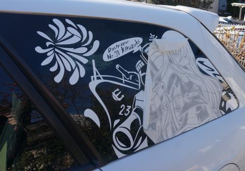 ただ痛車としては最近はフルカラーラッピングが主流なので普段は十分目立つが痛車のイベントに行くと紛れ込んだ一般車のように目立たない。