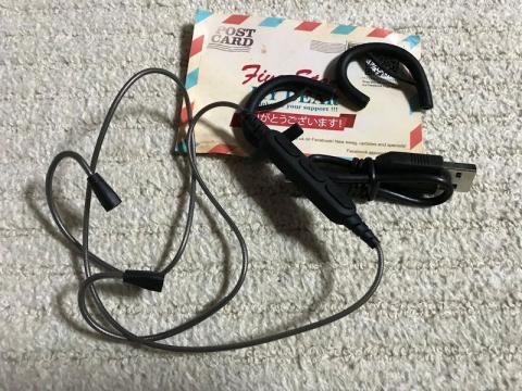 本体以外には、充電用のmicroUSBケーブルと耳掛け用のフックが同梱されています。必要最低限はきちんと揃っているというべきでしょう。