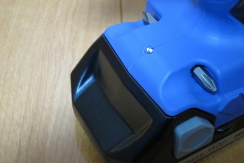 そうです。こいつはバッテリーの上部にLEDライトがついていて、下から光を当てるようになっているのです。ちなみにこの部分に付属のビットが一本収納されています。