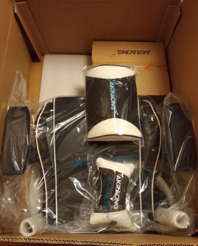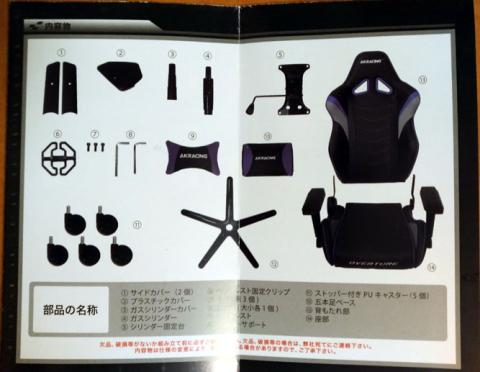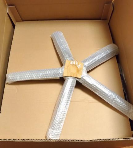 段ボールを開けると、まずは五本足のキャスターベースが登場しました。
