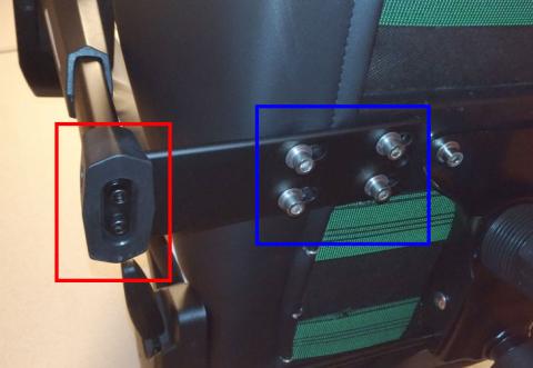 また、アームレスト下部の2本のボルト(赤枠部分)を少し緩めた状態で