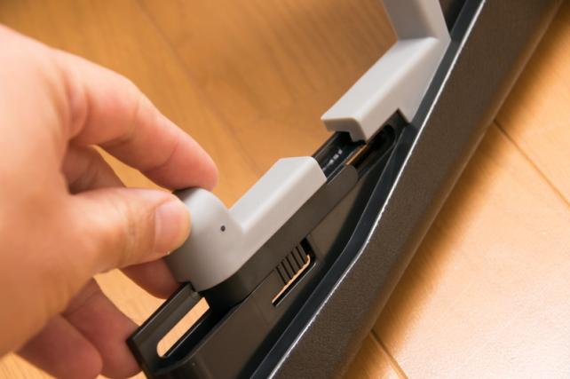 ギターの厚みに合わせてスタンドの受けの部分をスライドさせることが可能になっています。