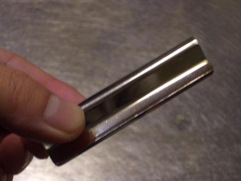 コイツを包丁の背に挟んで砥げば自動的に15度が保たれると言う優れモノ。