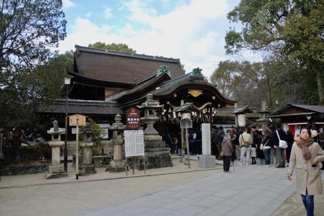 伏見大手筋商店街を抜けて、京都の渋滞の名所のひとつ御香宮交差点近くの御香宮神社へ