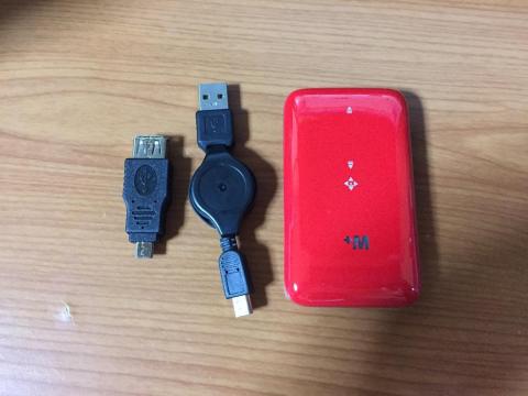 付属品はMiniBコネクタのリールケーブルとMicroBtoA変換コネクタ
