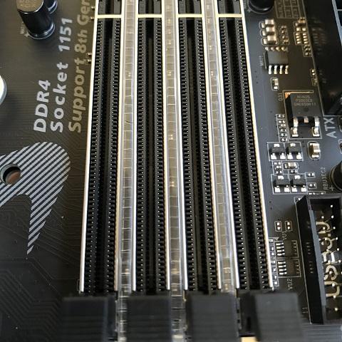 メモリーも背の低い物なら4枚刺しでも全く干渉しません。背の高いものは全くダメって事でもなく