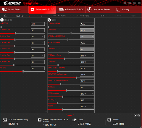 周波数の設定です。初期値は各コア個々に設定が違うものなんですね。初めて知った!