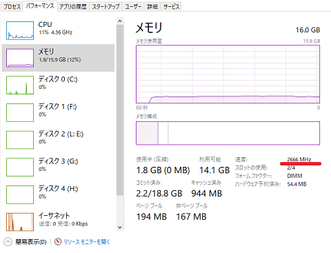 今はDDR4_2666(PC-4 2133)のメモリーを刺しており