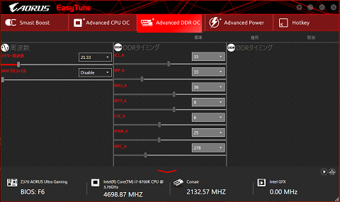 2113Mhzの設定となっています。きちんと今のメモリを認識していました。