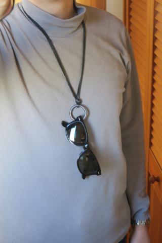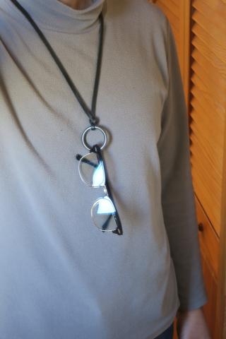 コレを首から下げれば、外したメガネを掛けておくことができる。