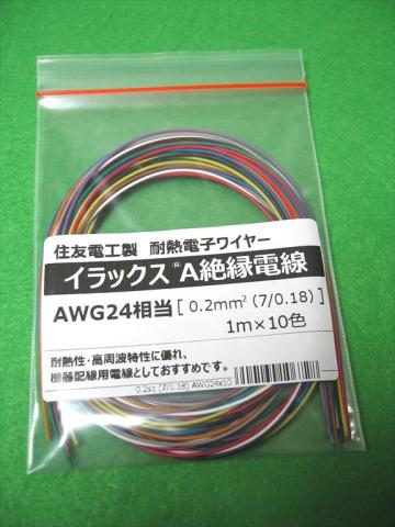 耐熱電子ワイヤー イラックス A 住友電気工業 絶縁電線 1m10色 0.2sq 導体外径0.54mm(AWG24相当)