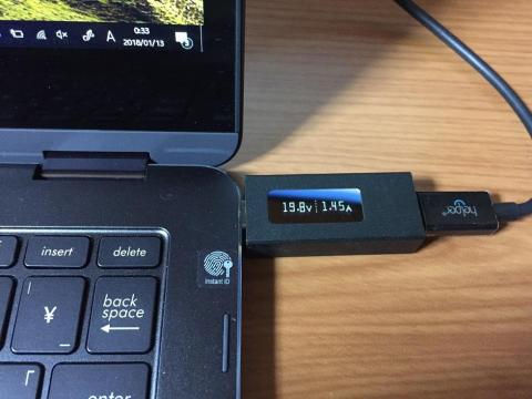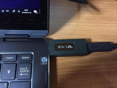 スマホを充電しながらZenBookFlipsを19.7V-1.80Aで充電できました。