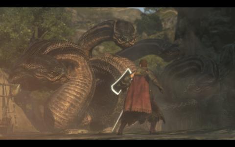 ちょっと分かりづらいけど、蛇の首によじ登って首を切ってる最中のスクリーンショットです。