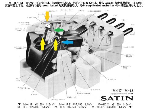 他の針を載せ替えて(M-117の針と大きさは同じ)再生してみましたが音がかなり小さくて再生不可でした 前に購入したM-18BXジャンクと同じでした SATINのカートリッジはダンパーにグリスを
